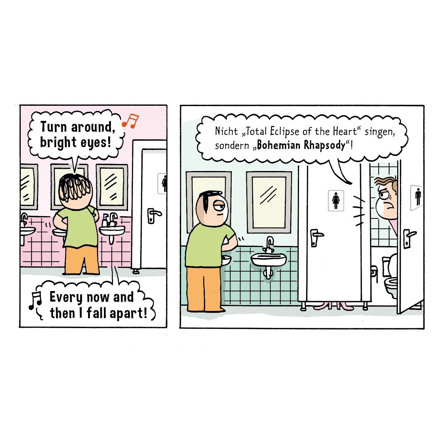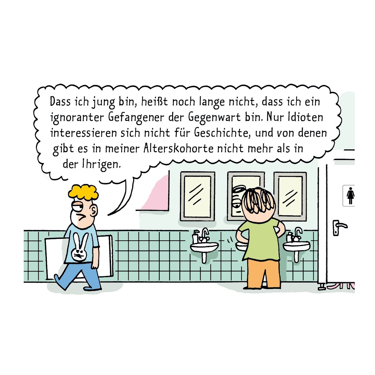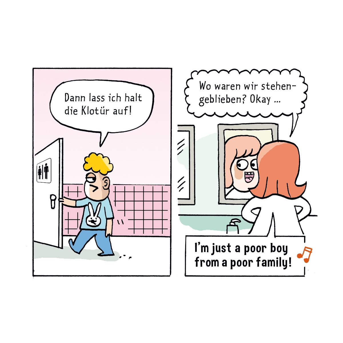 "Und wo (ausser bei Nikolaus Heidelbach) gibt es das schon, dass bereits das Vorsatzpapier von Interesse ist? Im vorliegenden Fall handelt es sich um eine Farbtabelle, deren Bezeichnungen von ‹Japanisches Paniermehl› über ‹Samtmilbe› bis ‹Ein zarter Morgen ohne Alfons› reichen, und überall ist angegeben, auf welcher Seite man wo die betreffende Farbe findet: ‹Frozen› also in ‹Frisur Strichjungentochter 1›." Thomas Bodmer, Weltwoche