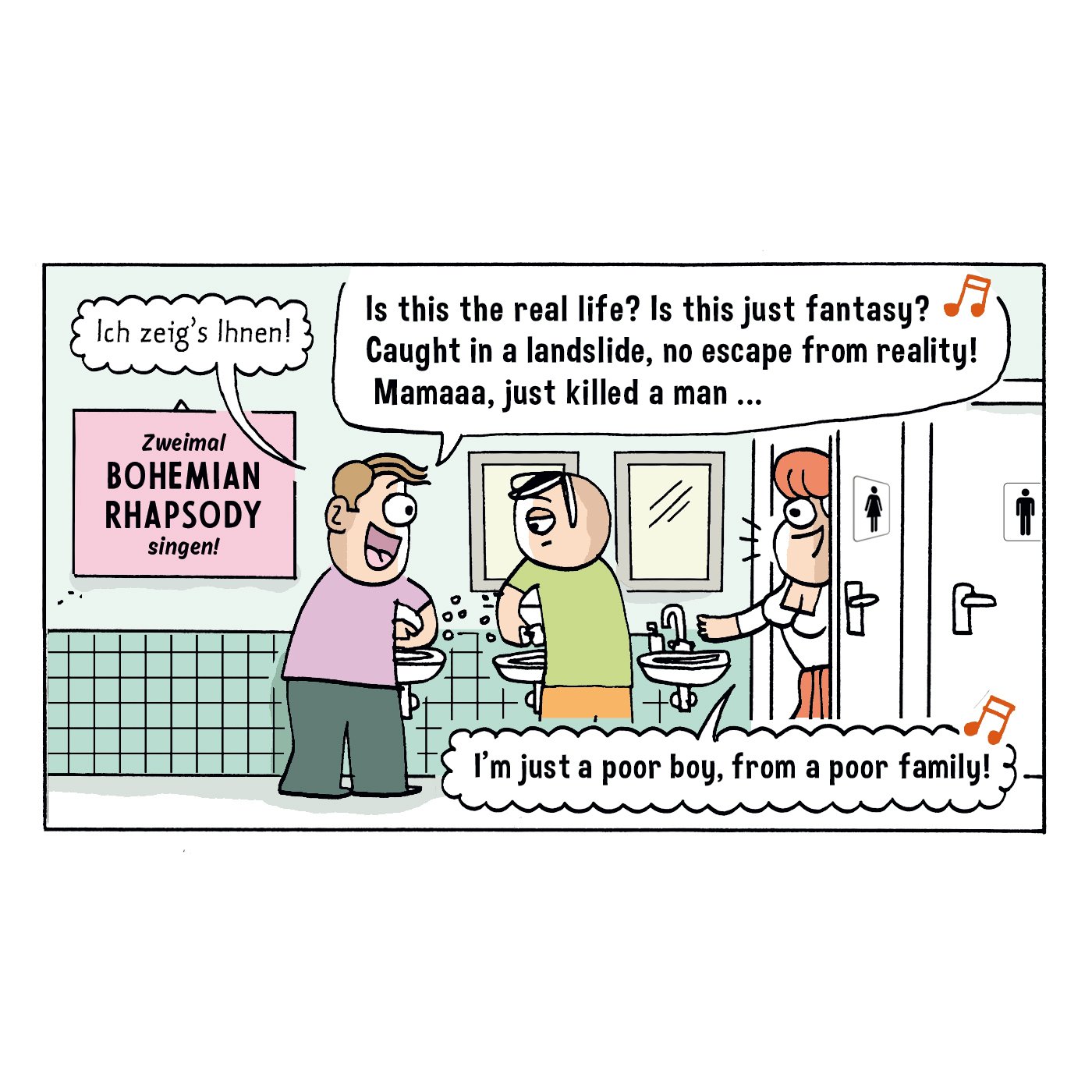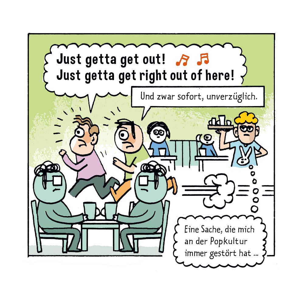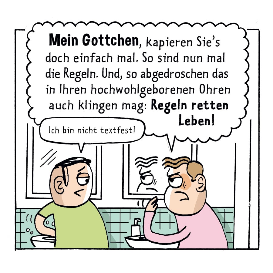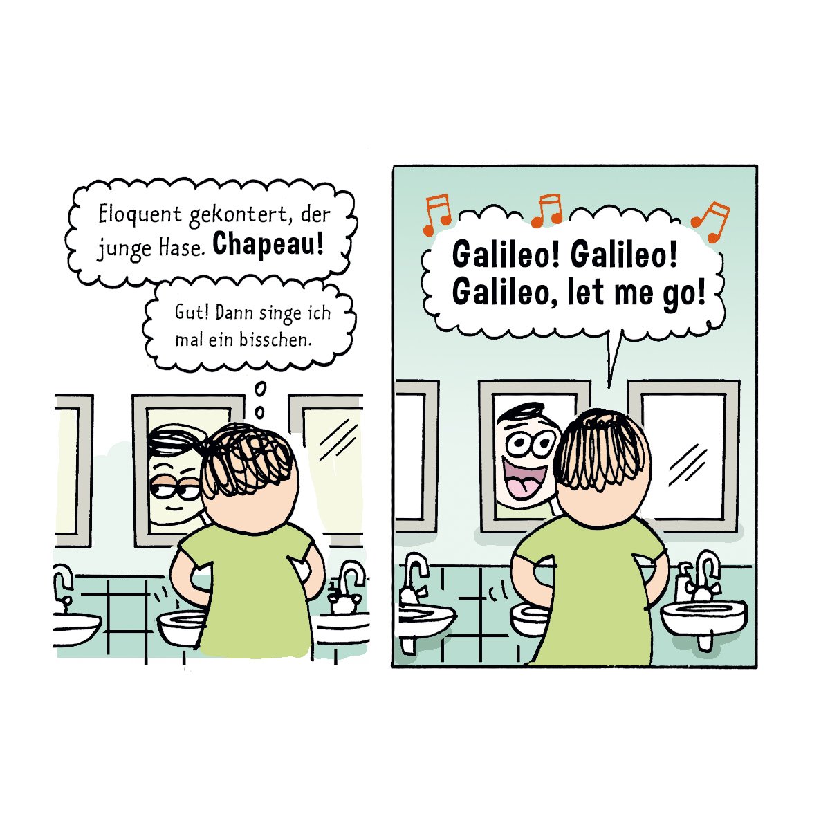 "Und wo (ausser bei Nikolaus Heidelbach) gibt es das schon, dass bereits das Vorsatzpapier von Interesse ist? Im vorliegenden Fall handelt es sich um eine Farbtabelle, deren Bezeichnungen von ‹Japanisches Paniermehl› über ‹Samtmilbe› bis ‹Ein zarter Morgen ohne Alfons› reichen, und überall ist angegeben, auf welcher Seite man wo die betreffende Farbe findet: ‹Frozen› also in ‹Frisur Strichjungentochter 1›." Thomas Bodmer, Weltwoche
