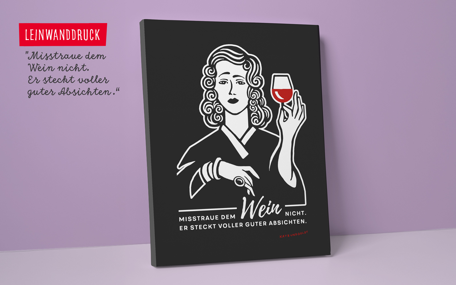 Katz & Goldt-Leinwanddrucke werden auf 300g Leinengewebe gedruckt – verschiedene Formate bis 80 cm Kantenlänge stehen zur Wahl.