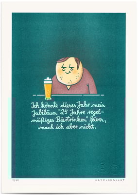 "Na, noch durstig, ihr Lieben?" – "Durstig nicht. Jedoch dem Trunk verfallen. Wir trinken aus Gewohnheit. Wir sind Gewohnheitstrinker."